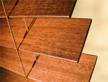 Wood blinds offer a warm and inviting look to any decor. Natural, solid made of the highest quality wood, 2" wood blinds are the modern alternative to shutters. 2" woods come in a wide range of species and finishes. Real wood blinds are also incredibly light compared to faux wood blinds, which makes them easier to draw. All come standard with decorative valances to cover the headrail, with colorful decorative fabric tapes optional. The light streaming through the open slats creates a beautiful glow in any room.